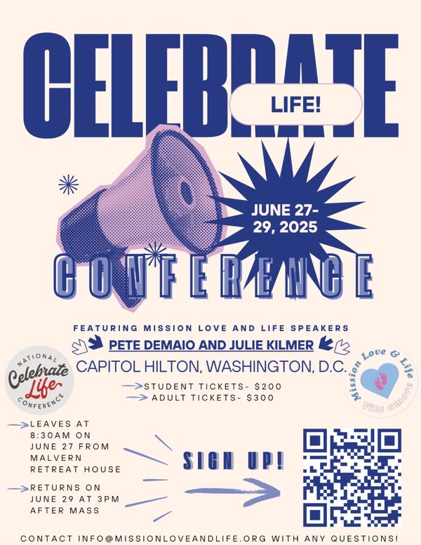 Must register and make a deposit no later than June 13th. We can take up to 48 Students with us. Our very own Pete DeMaio will be speaking on the Fatherhood panel along with Ryan Bomberger (Radiance Foundation) and Doug Johnson (Abby Johnson's husband) Julie Kilmer, member of our Leadership Team, will be speaking for Students for Life of America in DC.