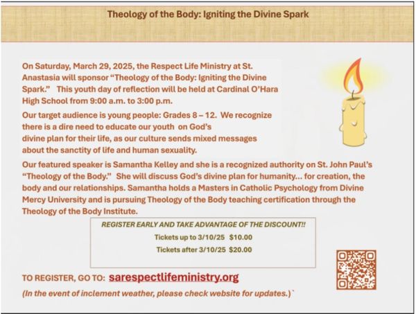 Come out for the 2nd annual Forum. Last year focused on Fatherhood and Men in the Pro Life movement. This year, 2 Mission Love and Life speakers are featured, Marlene Downing and Tricia DeMaio, along with 3 of our Missionary Disciples, Grace Meisenhelter, Lucy Rice and Gina Kern, and new to our Leadership, Julie Kilmer.