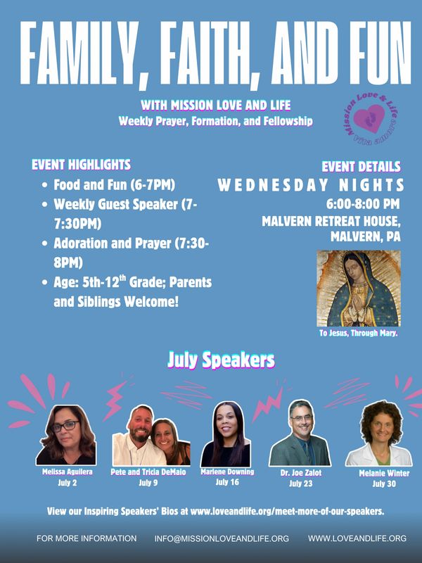 Food, Fun, Special Guest Speakers each week, and Adoration in